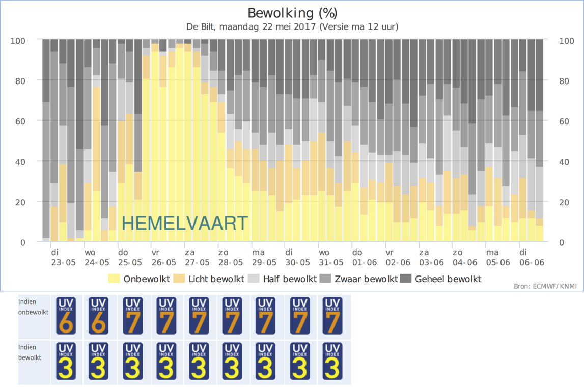 Voor de komende dagen verwacht het KNMI een hogedrukgebied met veel zon en zonkracht 7. En dat is vrij veel voor Nederland.