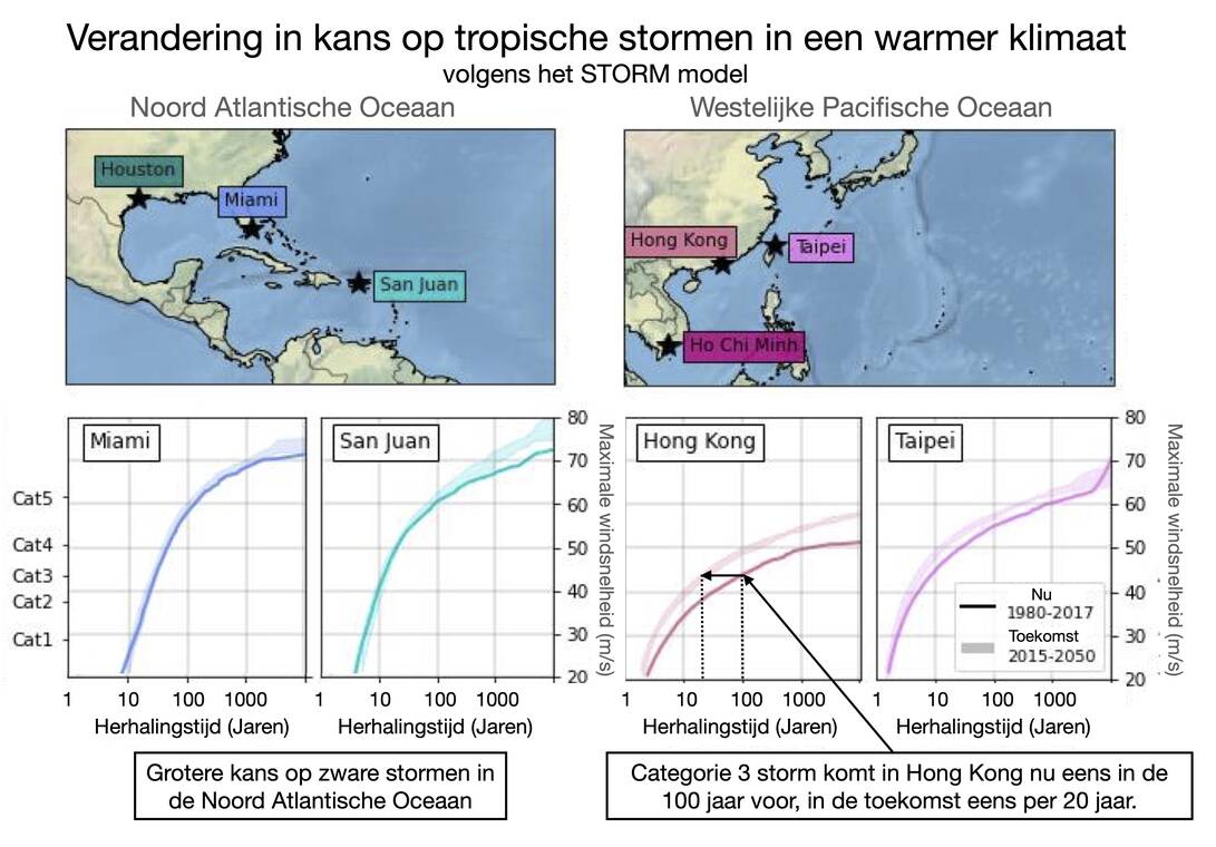 De uitkomsten laten zien dat in de meeste regio’s waar tropische cyclonen voorkomen, de kansen op krachtigere cyclonen toenemen in een warmere wereld, met de grootste toenames in de Zuidelijke Stille Oceaan en de regio van Hong Kong. Deze toename is direct gelinkt aan een toename van de zeewatertemperatuur. Warmer zeewater geeft meer verdamping, waardoor tropische cyclonen meer energie krijgen via condensatie van grotere hoeveelheden waterdamp in de atmosfeer.