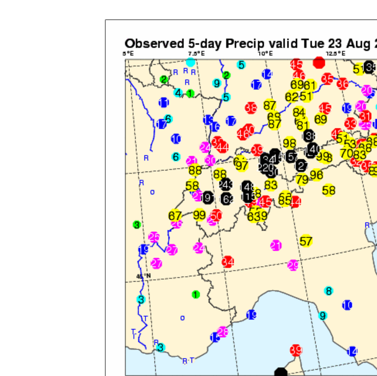 Rond 20 augustus viel er zeer veel regen in Europa, vooral in het Alpengebied. Het slechte weer werd veroorzaakt door een lagedrukgebied waarmee kou op grote hoogte in de atmosfeer vanuit west-Europa naar het gebied van de Middellandse Zee werd gevoerd.