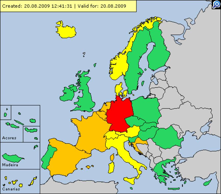 De warme lucht die ons land woensdag en donderdag bereikte liet de thermometers de afgelopen dagen in het zuiden van Europa al flink oplopen. De website www.meteoalarm.eu kleurde in verschillende landen oranje of rood vanwege de hitte. In Frankrijk, Italië en Spanje zijn temperaturen gemeten tussen 35 en 40 graden, ook hier de hoogste van deze zomer. Albi en Mantauban in Frankrijk noteerden woensdag 39,7 graden, het Italiaanse Florence 39,6 graden en Badajos in Spanje 39,0 graden. Carpentras in Frankrijk was dinsdag met 39.5 graden de warmste plaats. Florence in Italië noteerde 38,7 grade.