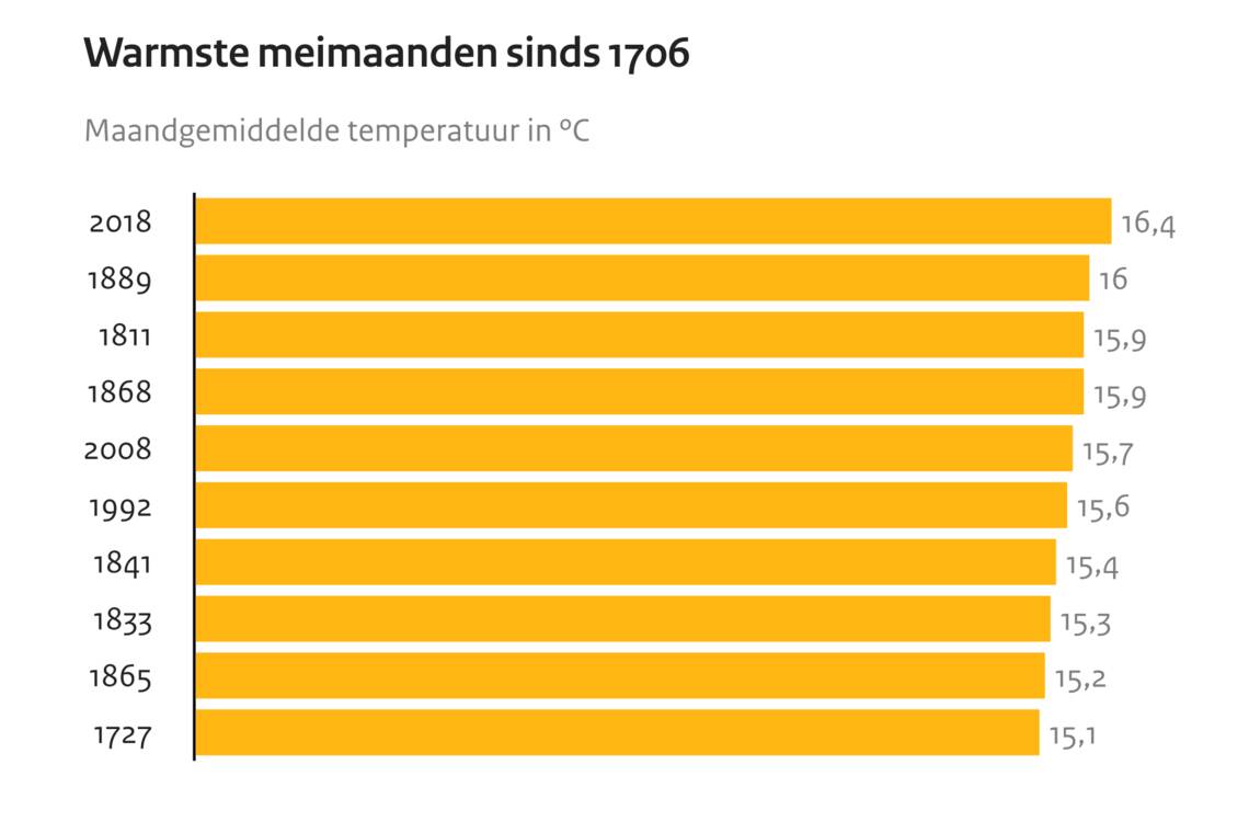 Warmste meimaand sinds 1706, het begin van de regelmatige temperatuurregistratie