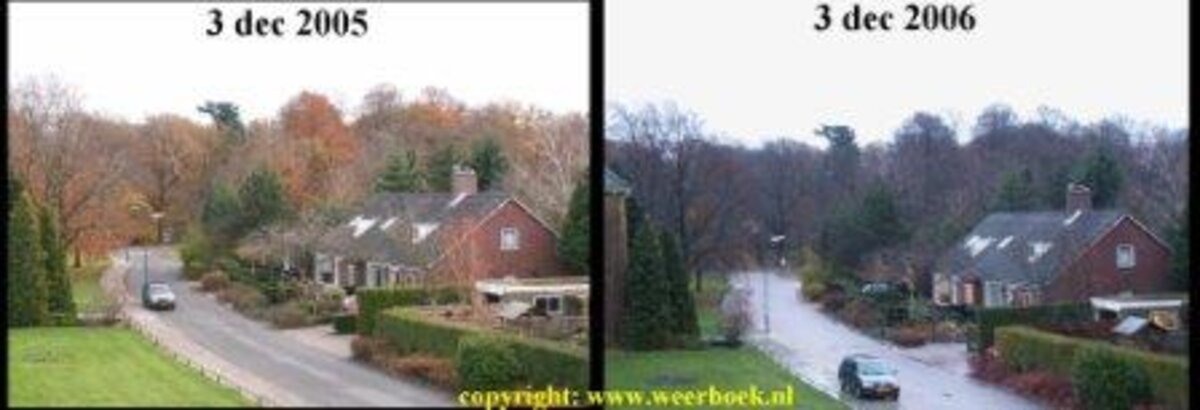 Ook in 2005 was de herfst extreem warm en bleef het blad uitzonderlijk lang aan de bomen zitten. KNMI-meteoroloog en weerfotograaf Jacob Kuiper fotografeert de natuur jaarlijks om de verschillen in bladontwikkeling en bladval in beeld te brengen. Uit zijn opnamen (zie foto's onder dit artikel) blijkt dat de natuur najaar 2006 nog groener is dan in 2005 en dat rond er begin november veel meer blad aan de bomen zat dan rond die tijd in 2004. Voor de bomen is dat niet goed: bij gelijke wind is de winddruk op een boom met blad acht keer zo hoog als op een kale boom. Als het gaat sneeuwen of ijzel ontstaat kan de toestand nog dramatischer worden. Na de eerste herfststorm en de eerste vorst (op 2 november -3,9 graden op de vliegbasis Twenthe) zijn wel wat bladeren van de bomen verdwenen maar de natuur was nog steeds opmerkelijk groen. Later in november en in het begin van december 2006 hebben nieuwe depressies zo vaak de wind merkbaar laten aantrekken dat de hoeveelheid blad toen snel is verminderd. Begin december blijkt dat ook eiken daarbij veel van hun blad hebben verloren, iets wat in begin december 2005 nog niet het geval was. De actieve depressies zorgden tegelijkertijd voor aanvoer erg zachte lucht waardoor de gemiddelde temperatuur van de herfst in 2006 flink boven het record uit 2005 is uitgekomen.