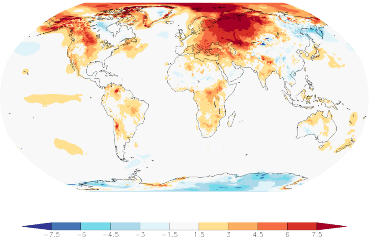 De weerfluctuaties in Rusland en Alaska zijn inmiddels afgelopen. El Niño en de warme IJszee zorgen ook de komende maanden nog voor hogere temperaturen, rond de 1,2 graden boven pre-industrieel. Vooral de invloed van El Niño zal in de loop van het jaar langzaam afnemen. De opwarming door broeikasgassen blijft gestaag doorgaan.