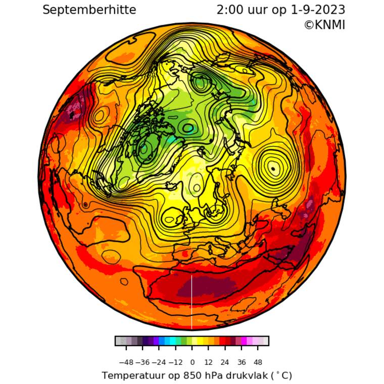 De afgelopen week bevonden we ons steeds aan de zonnige kant van de straalstroom in het gebied met hoge luchtdruk (figuur 1). Dat zorgde voor aanvoer van warme lucht uit het zuidoosten en veel zon. Bovendien schijnt de zon begin september nog redelijk fel. Tel daar de gemiddelde opwarming van Nederland bij op en het resultaat is een week met uitzonderlijk hoge temperaturen.
