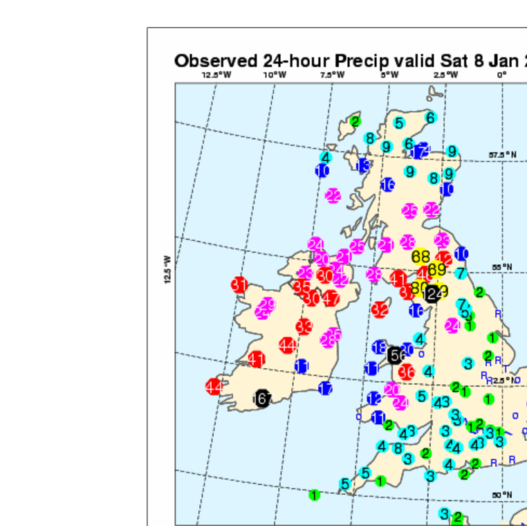 De stormdepressie trok vanuit Engeland over de Noordzee langs de kust van noord-Duitsland richting het zuiden van Scandinavië. Op 8 januari om 7 uur lag de kern bij Aberdeen. In Engeland zijn zaterdagochtend onder andere op het eiland Man windstoten gemeten van ruim 130 km/uur. Langs de west en zuidkust van Denemarken bereikte de wind orkaankracht 12 met gemiddelde snelheden van 115 km/uur en windstoten van 162 km/uur. De storm was hier de zwaarste sinds eind 1999. In het oosten van Ierland en in het westen van Engeland veroorzaakte de depressie heveige regenval, waarbij op een aantal plaatsen in 24 uur meer dan 150 mm viel.