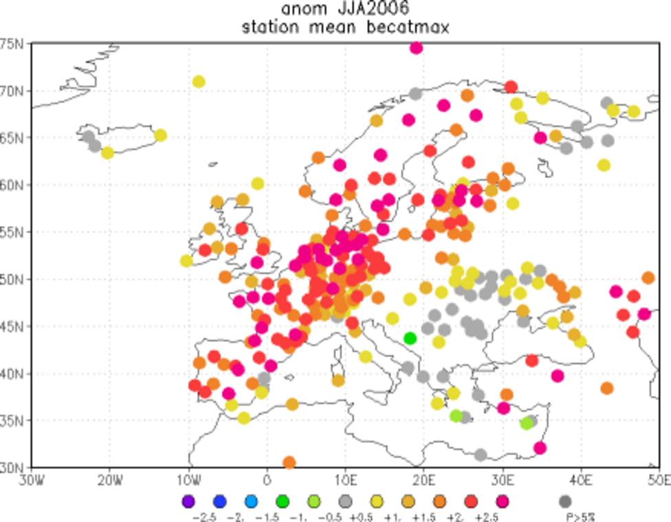 Uit gegevens van de nationale weerinstituten blijkt dat 2006 een wisselvallige zomer was met eerst hitte en droogte maar in augustus in veel landen koel en nat weer. Het Europakaartje onder dit artikel toont de afwijking van de gemiddelde temperatuur.