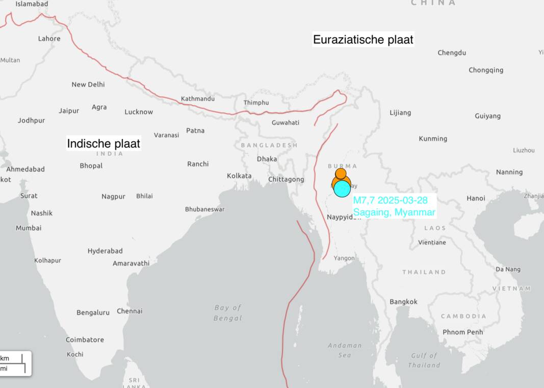 De aardbeving van vandaag is sterk gevoeld in de regio, zoals in Bangkok (Thailand) op ruim 1000 kilometer afstand en in de West-Bengalen in India op 800 km afstand.