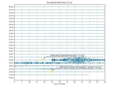 Ook in het seismische station van het KNMI in Zuid-Limburg (in de Heimansgroeve) zijn de trillingen van de beving van 12 november gemeten.