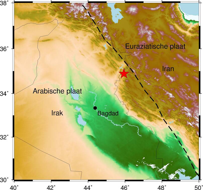 De zware beving is opgetreden op het onderliggende Zagrosbreuksysteem