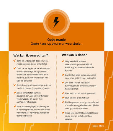 In de weerkamer van het KNMI houden meteorologen het weer 24/7 in de gaten en maken ze actuele weersverwachtingen. Wanneer zij gevaarlijk weer verwachten en er een kans op code oranje of rood is, betrekken de meteorologen andere KNMI-experts in de besluitvorming. Weermodelexperts geven aan hoe goed bepaalde weermodellen de weersituatie volgen, klimaatexperts geven aan hoe uitzonderlijk de situatie is en communicatieadviseurs geven een beeld van wat er op dat moment leeft in de samenleving en de verwachte impact. Voordat het KNMI een code oranje uitgeeft, overlegt het KNMI met andere meteorologische partijen om te onderzoeken of de waarschuwing breed gedragen wordt.