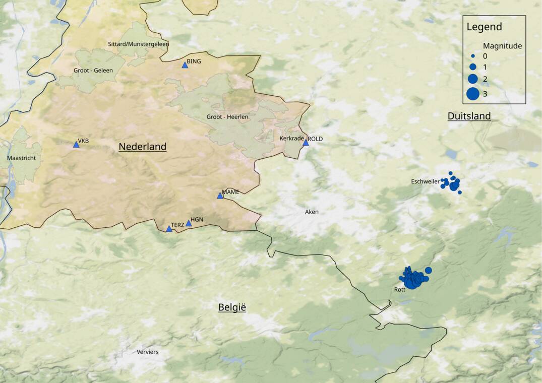 Sinds begin dit jaar is er een serie natuurlijke aardbevingen gaande ten zuidoosten van het Duitse Aken, die ook in Nederland gemeten worden. De zwaarste bevingen waren op 2 en 14 januari 2021, beiden met een magnitude van 2,7.